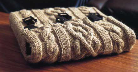düğmeli kahverengi örgü laptop kılıfı modeli