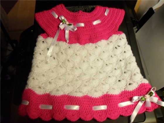 pembe beyaz kurdeleli örgü bebek bluzu modeli